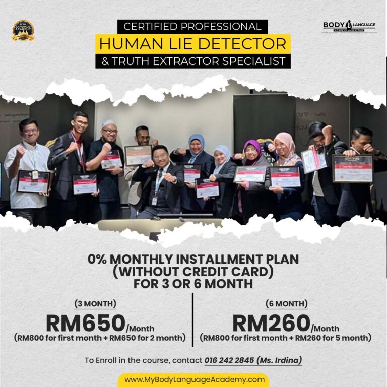 Program Pensijilan ini bukan sekadar ilmu biasa-biasa. Ia adalah program yang khas dianjurkan untuk melahirkan pakar dalam membaca penipuan & mendapatkan kebenaran